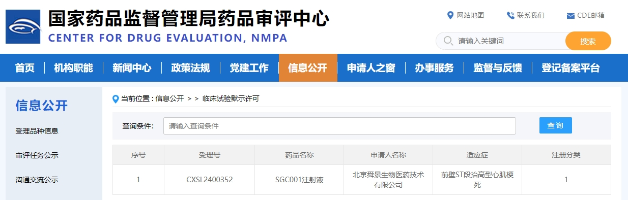 2024年08月05日,由熱景生物(SH.688068)孵化的創新藥公司北京舜景生物醫藥技術有限公司(以下簡稱舜景醫藥)研制的全球首款創新藥SGC001注射液成功獲得國家藥品監督管理局藥品審評中心臨床試驗默示許可。這是繼2024年05月22日該產品獲得美國FDA臨床試驗(IND)許可之后又一里程碑事件。2025年3月,SGC001獲得美國FDA授予的快速通道認證(Fast Track Designation)。2025年10月,SGC001 Ib期臨床研究獲得積極的初步結果,并亮相維也納BIO Europe 2025,為全球急性心梗治療領域帶來新的研發視角。