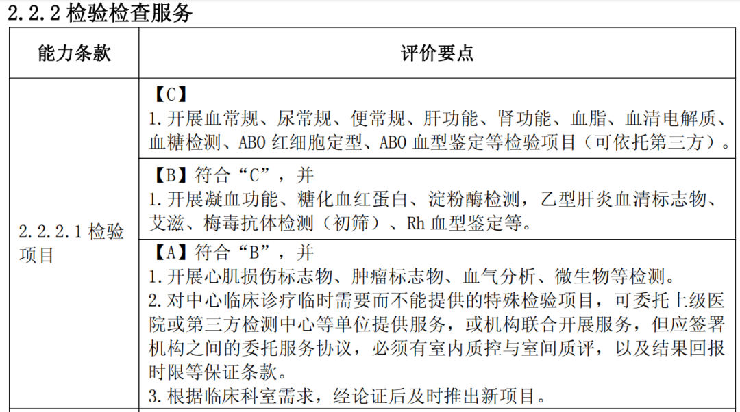 社區衛生服務中心要求能開展心肌損傷標志物、腫瘤標志物等檢測項目,并配備與診療科目相匹配的設備。