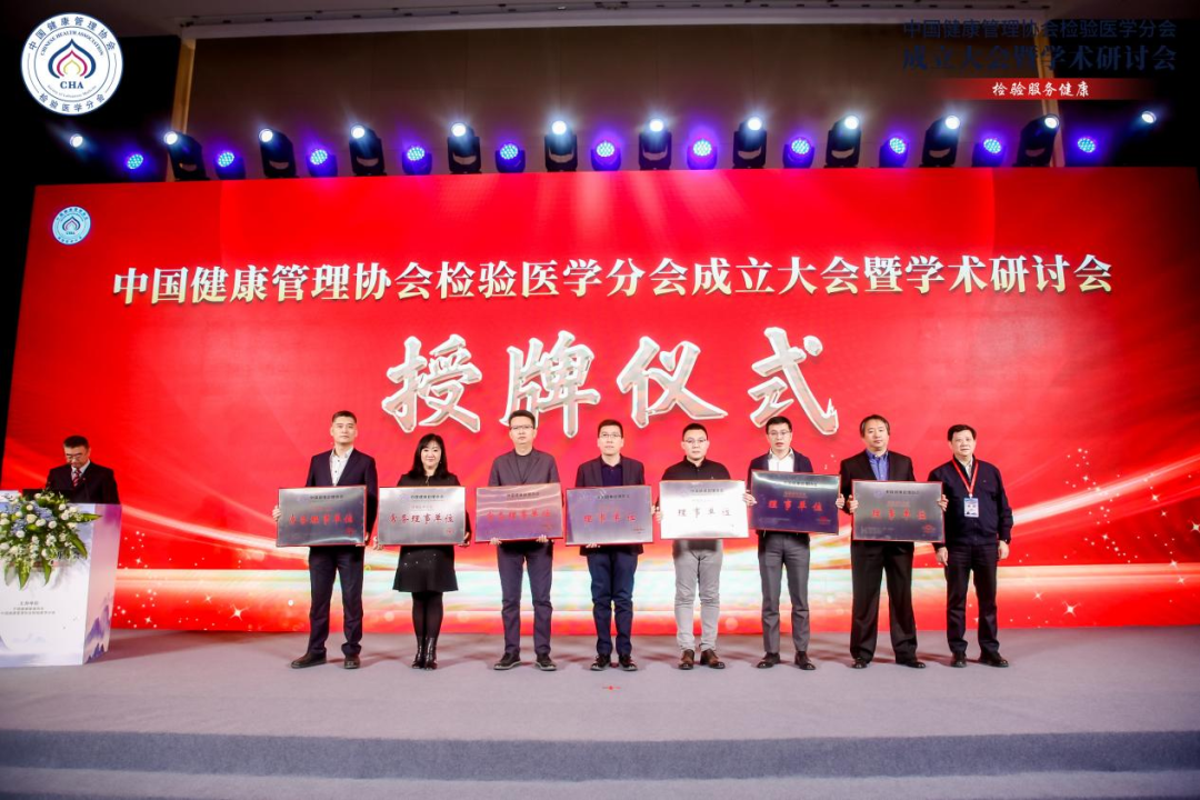 會上,中國健康管理協會副會長兼秘書長周華教授宣布中國健康管理協會檢驗醫學分會常務理事單位和理事單位名單并頒發牌匾,