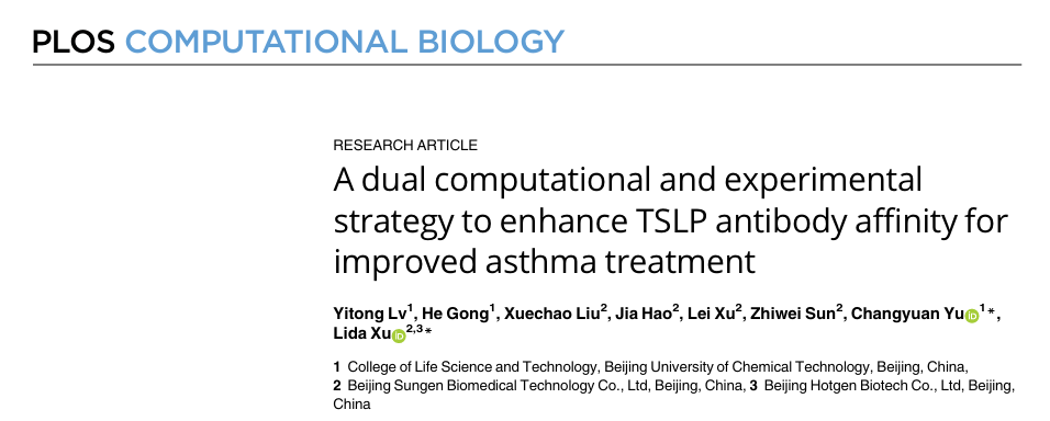 近日,熱景生物“X-Gen AI新藥發現與設計研究中心”在生物信息學與計算生物學領域高影響力經典期刊PLOS Computational Biology上發表了題為“A Dual Computational and Experimental Strategy to Enhance TSLP Antibody Affinity for Improved Asthma Treatment” 的論文(doi: 10.1371/journal.pcbi.1011984)。“X-Gen AI新藥發現與設計研究中心”聯合培養博士生呂祎彤為論文第一作者,許立達研究員為論文主要通訊作者,北京化工大學喻長遠教授為共同通訊作者,舜景生物孫志偉總經理為該套流程的搭建提供了極其重要的指導。