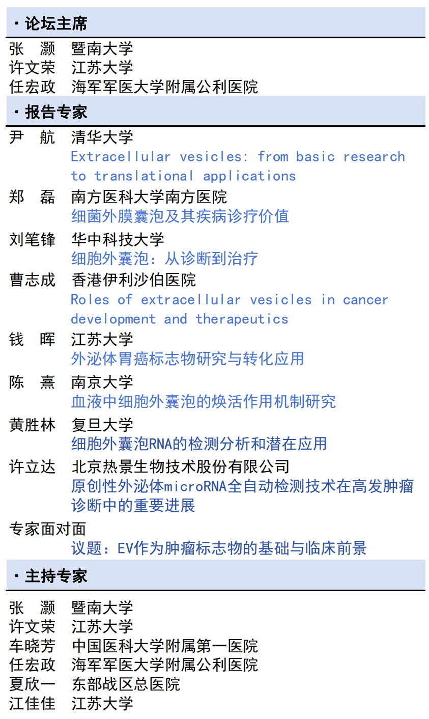 ? 分論壇主題:外泌體和微囊泡標志物論壇