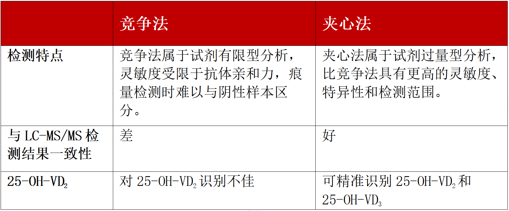 表:25-OH-VD檢測夾心法與競爭法的對比