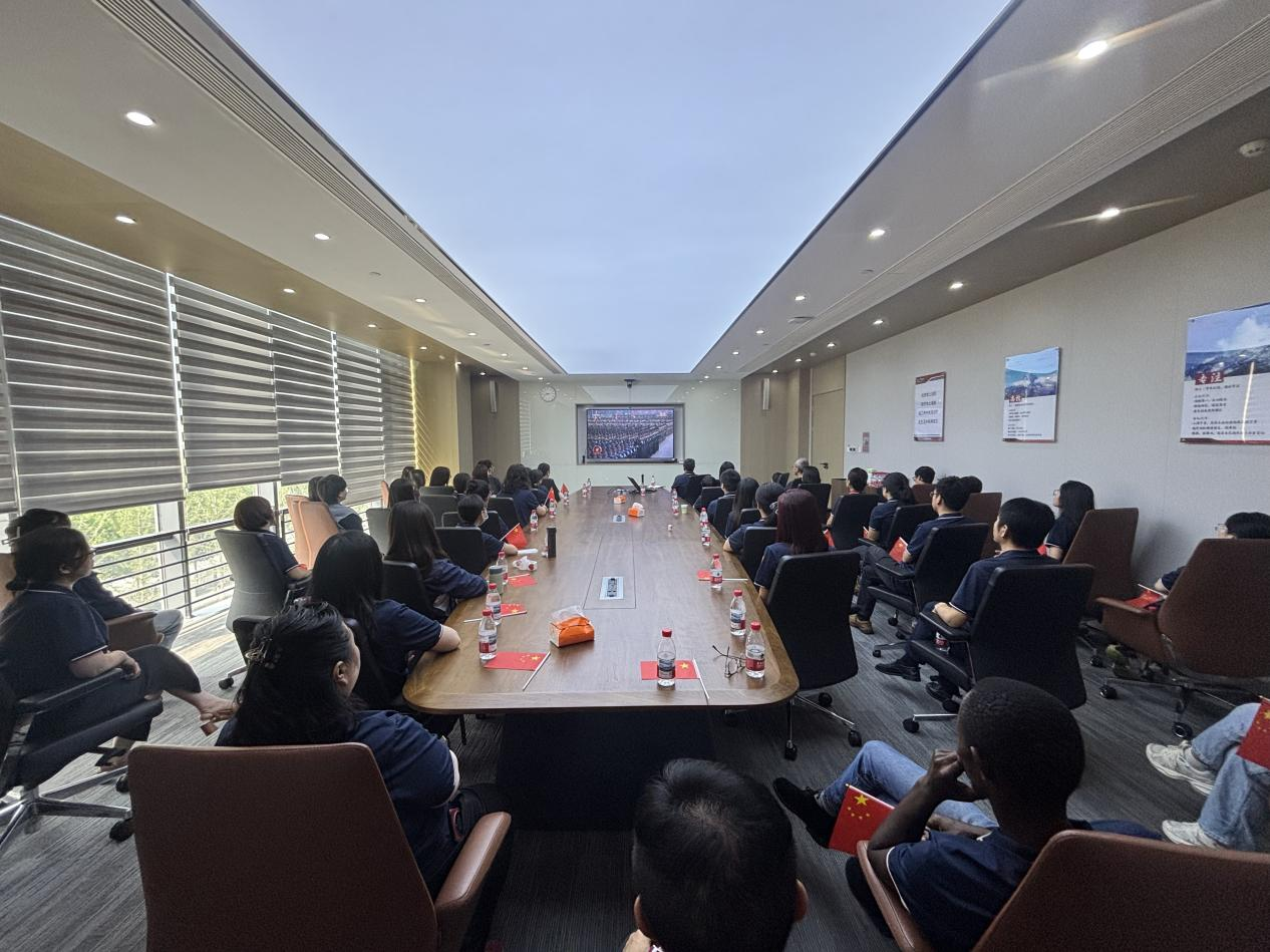 直播觀看過程中,公司員工全神貫注,當受閱官兵邁著堅定整齊的步伐、颯爽英姿震撼全場,當國產現役主戰裝備相繼亮相彰顯國家強盛國力,當承載功勛榮譽的戰旗方隊與呼嘯而過的空中梯隊依次登場時,在場人員無不心潮澎湃,無不為之贊嘆,響起持久而熱烈的掌聲,以表達對革命先輩的崇高敬意。