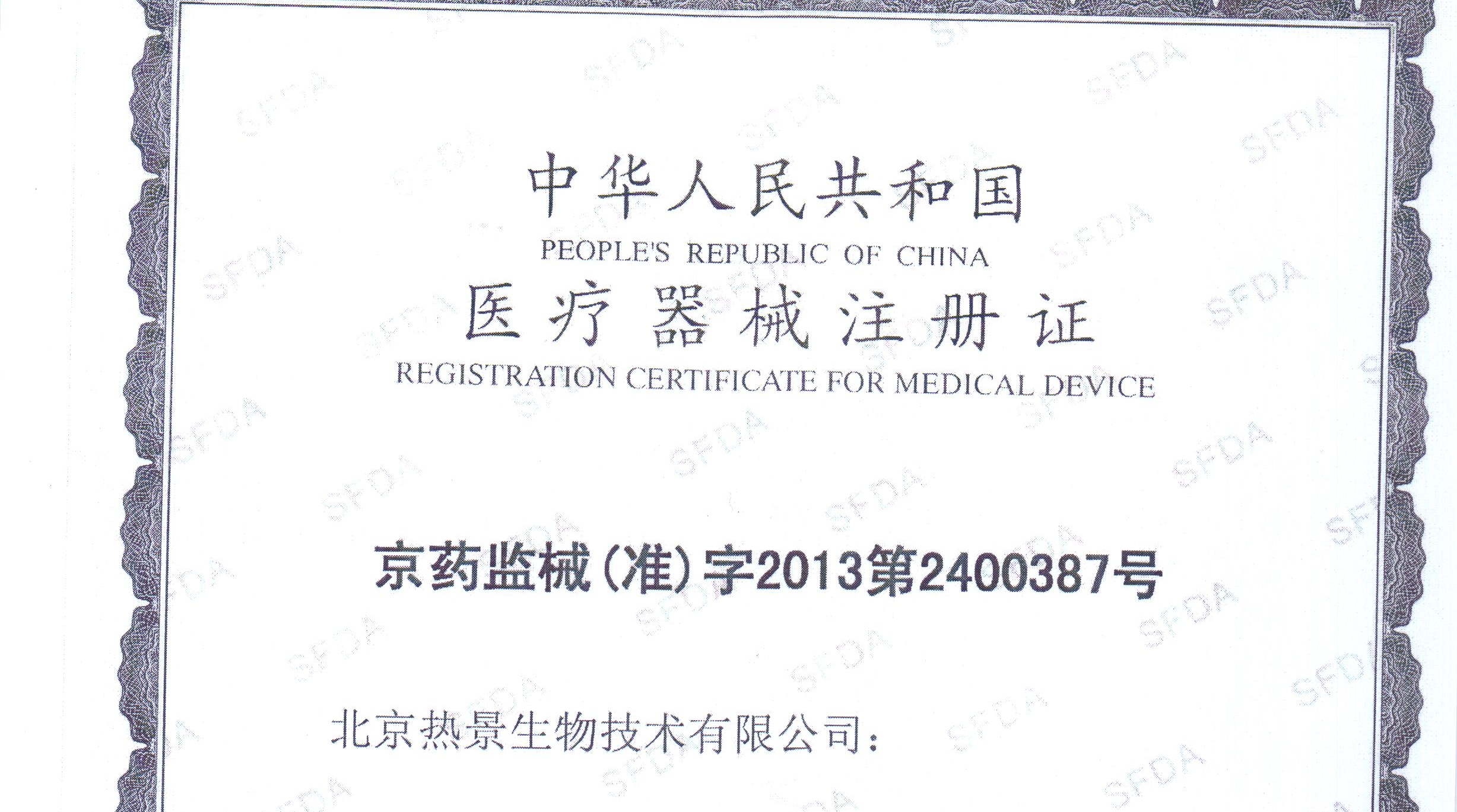 通過多人的共同努力,熱景生物心肌脂肪酸結合蛋白定量測定試劑盒(上轉發光法)獲得醫療器械注冊證,注冊證號:京藥監械(準)字2013第2400387號。
